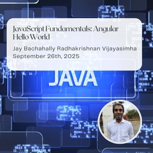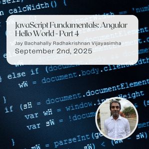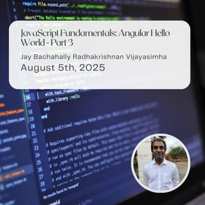 Jay Bachahally Radhakrishnan Vijayasimha presented a class related to: JavaScript Fundamentals: Angular Hello World - Part 4